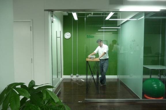 Là encore, les employés sont souvent des ingénieurs, plutôt jeunes. Certains d'entre eux travaillent donc à des bureaux sans chaise, comme vous pouvez le voir sur la photographie ci-dessus.
